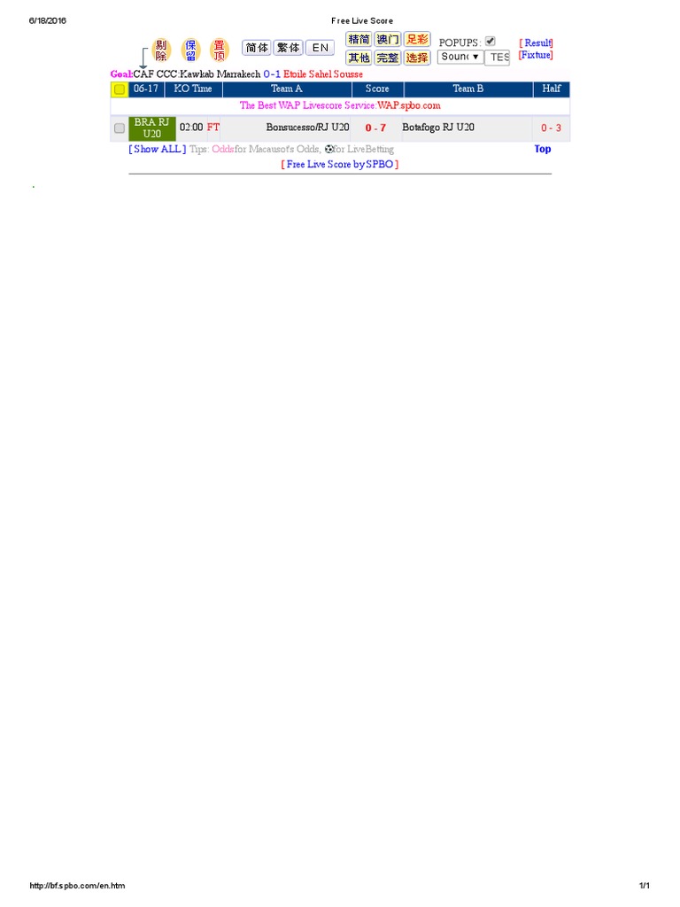 Spbo Free Live Score Result : Here you can find games that are being played today, as well as all major league game.